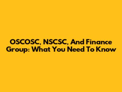 OSCOSC, NSCSC, And Finance Group: What You Need To Know