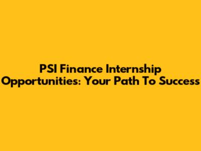 PSI Finance Internship Opportunities: Your Path To Success