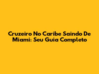 Cruzeiro No Caribe Saindo De Miami: Seu Guia Completo