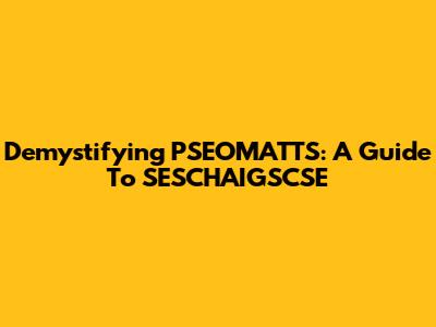 Demystifying PSEOMATTS: A Guide To SESCHAIGSCSE
